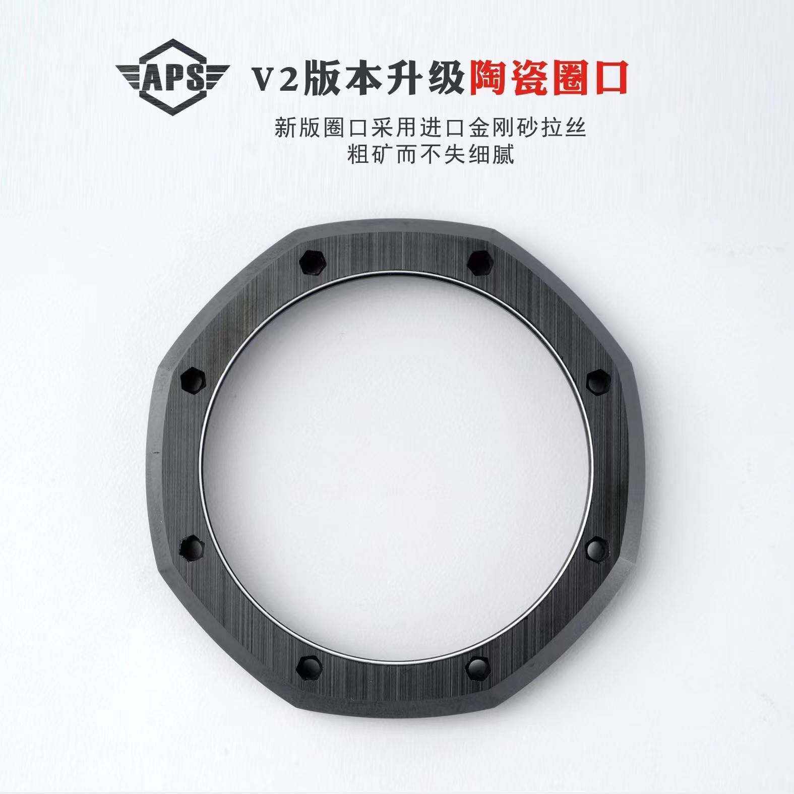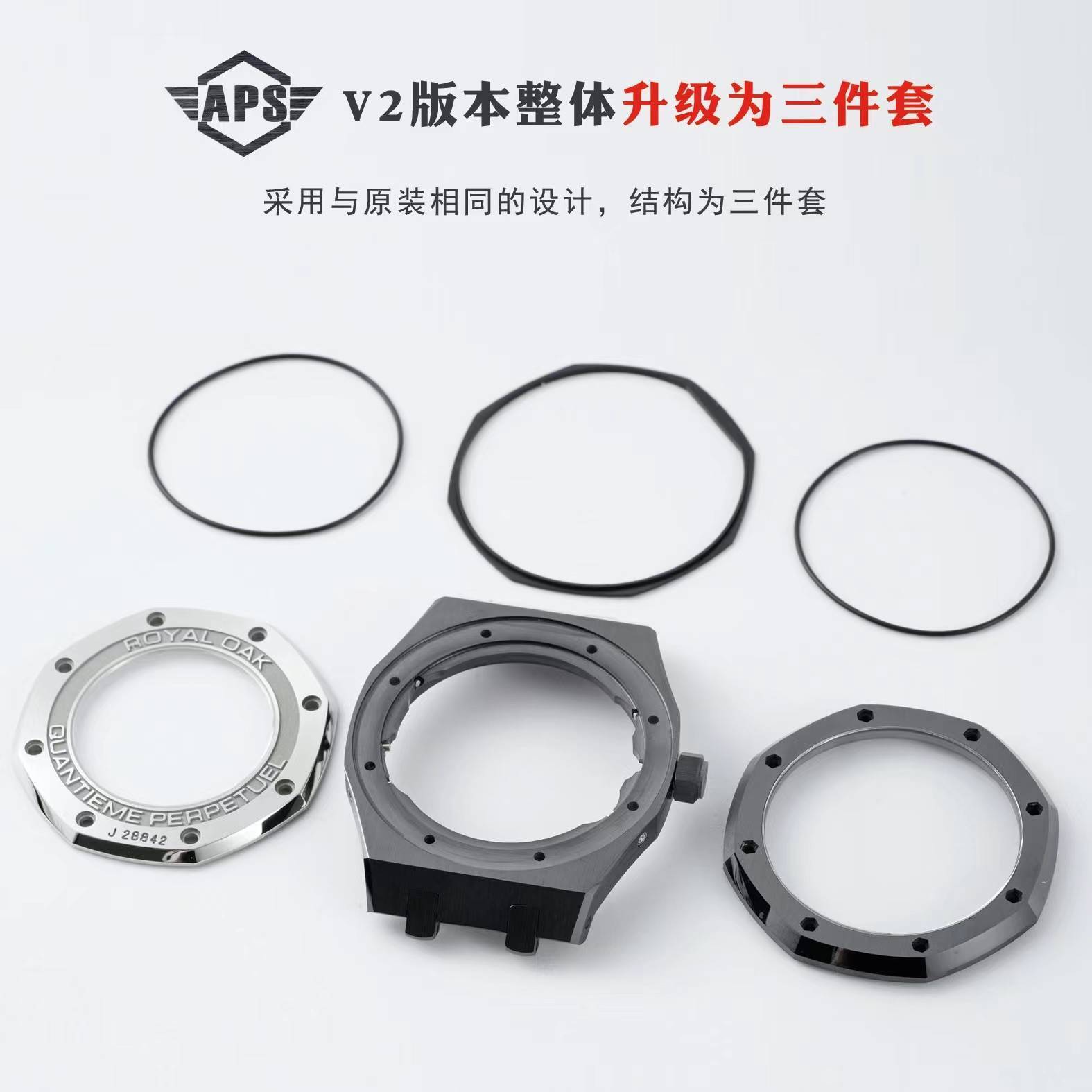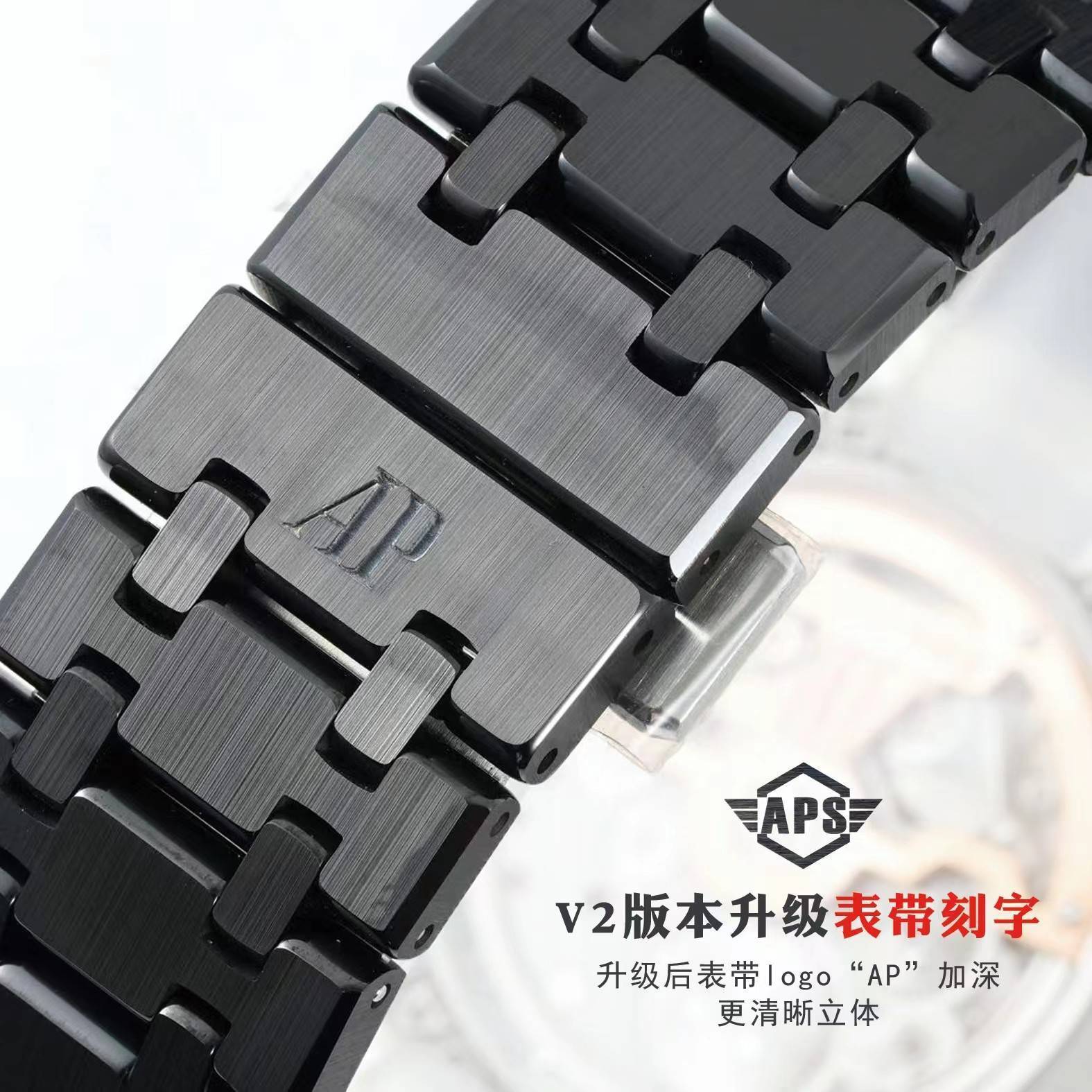 APS V2版26579CE黑陶瓷,数量有限先到先得,全新升级如下 1.表壳:采用全新设计,一体式全陶瓷表壳,永不褪色,剔除金属内胆:使其更具质感 2.按地:全新升级的侧面5颗按地,采用与ZP相同的六边形设计,和表壳的八角型相互辉映,将细节做到极致,一丝不苟 3.把头:升级版采用全陶瓷式一体把头,区别于v1版本电镀工艺,加深logo刻字,真正完成永不褪色! 4.底盖:全新升级CNC平面式雕琢,对标原装的苛刻工艺设计,使其刻字愈加平面,编码愈加深化,大大提升了质感 5:圈口:采用进口金刚砂,不时地打磨拉丝工艺,使其圈口愈加细腻,提升整理质感 6:表扣:重新设计陶瓷表扣logo的加工方式,采用平面式雕琢,愈加深邃,更具质感 7:螺丝:新版采用316L精钢材质,通体抛光打磨,加深螺纹设计,使v2版不会再有掉螺丝的痛点 APS如虎添翼,不惜提升成本,力争把细节做到最好做到极致