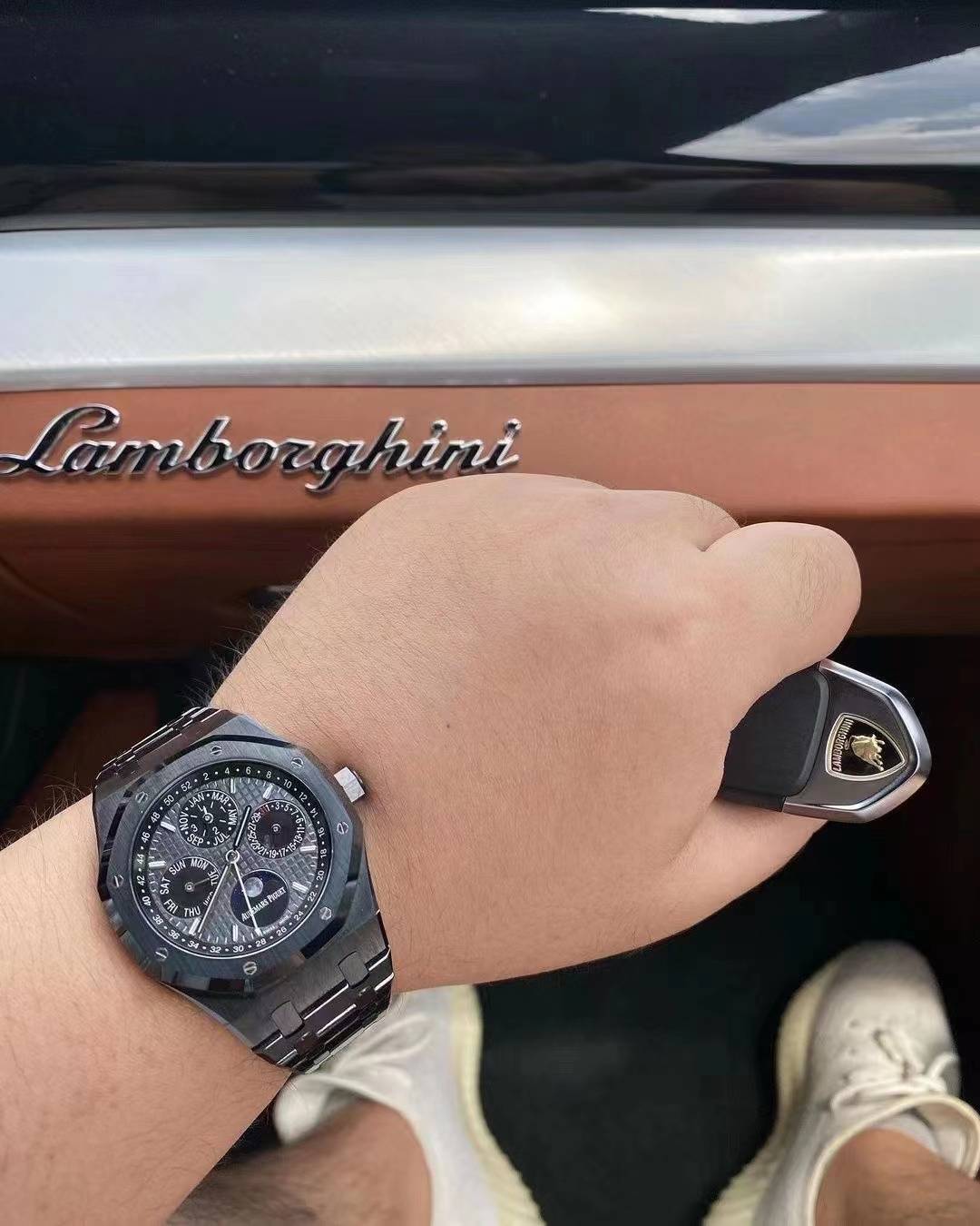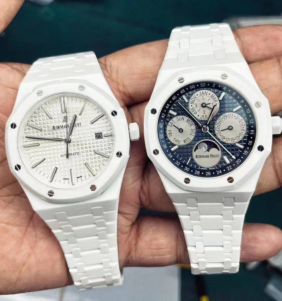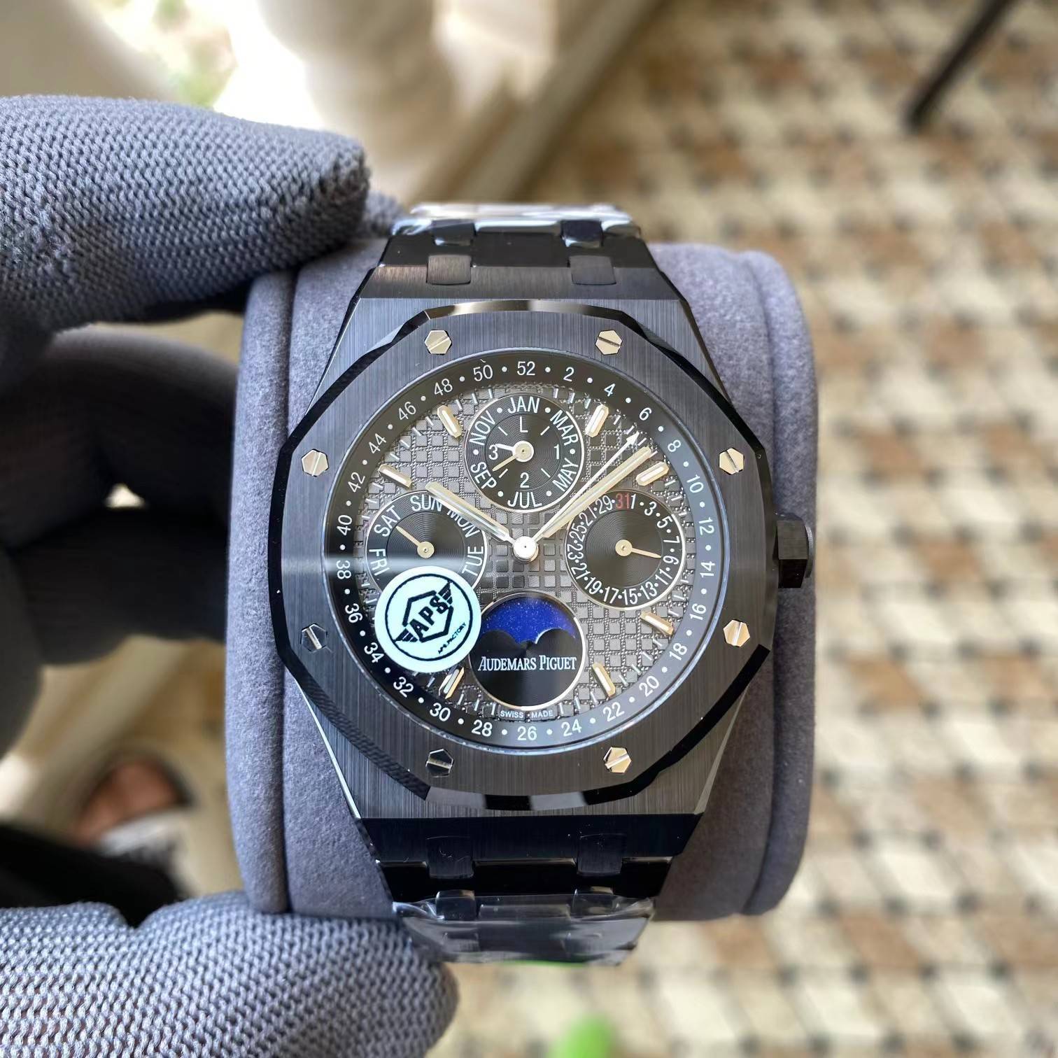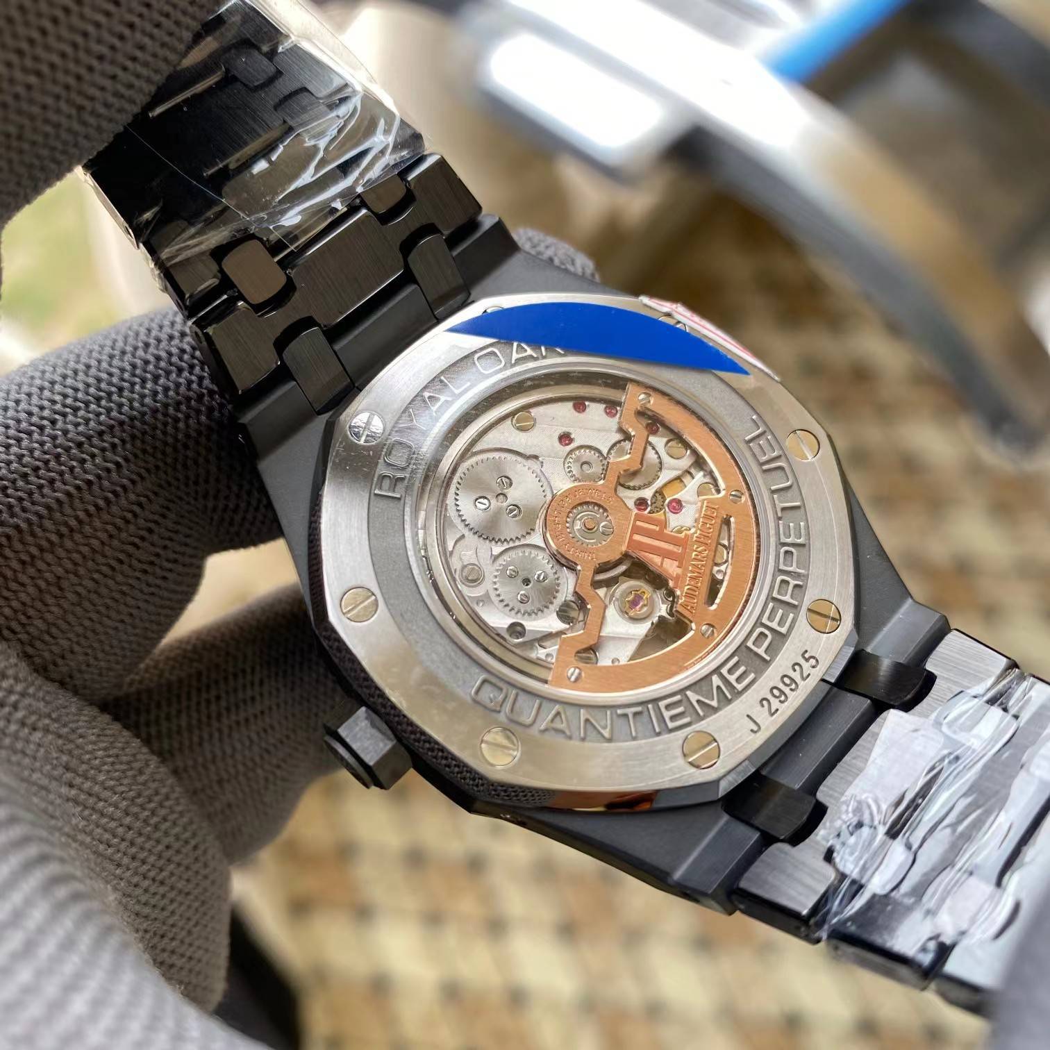 在复刻腕表界中,出品爱彼的玩家在之前引见爱彼的15400和15710的文章中有提及过,JF,ZF,APS就是目前爱彼出品玩家中的三大代表,JF就曾经呈现摆烂状态,在出品进度上也是爱搭不理,曾经垄断爱彼的皇家橡树出品的他目前由于外力要素而选择谨慎自保招致自家出品的腕表逐步被淘汰,而且还是没有售后效劳的,ZF是个全能型的玩家,近些年复刻腕表也是内卷严重,全能型的玩家也开端见缝插针,看见JF的位置逐步的空出来了,就出品了爱彼的钢王表款还有橡胶表带的15710和15703,目前APS是称霸了爱彼了的钢王表款15400和15500,还有爱彼的15710和15703,就是由于APS搭载上了一体的3120机芯,其实APS一开端在市面上被熟知是由于他出品了爱彼万年历26579型号腕表,这个万年历26579在之前市面上是没有出品的,加上这款腕表当时出品的是全白陶瓷的表款,外观是十分亮眼的,固然功用性上还有机芯上是没有做到真正的恢复,但是整表的外观就是带着会有回头率的腕表,这期我们测评下全黑陶瓷的爱彼皇家橡树万年历26579升级的V2版,全白陶瓷还未升级。