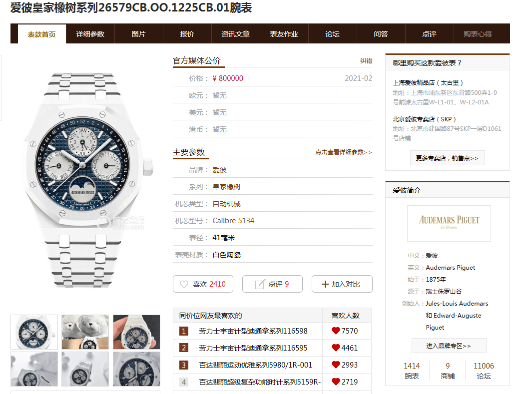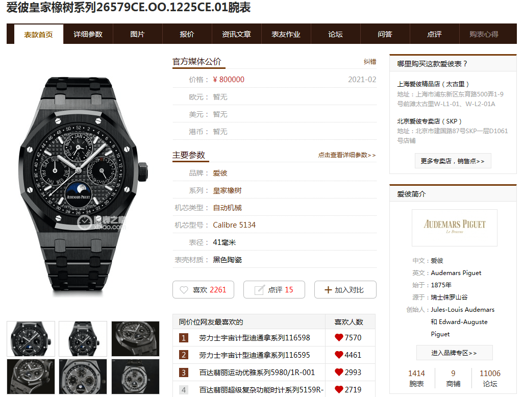 大家好,这里是HO先生讲表,爱彼是腕表界的奢华名表之一,腕表的品牌层次要在劳力士之上,腕表的制表作风也有着自己独家的设计特征,爱彼主打的皇家橡树系列都是以八边形的表壳作为外观的特征辨认点,爱彼在制表工艺也非浪得虚名,爱彼的腕表涵盖的功用就有万年历,陀飞轮,计时腕表,月相腕表等等,一个具有这百年历史的腕表品牌至今还是自己的开创人家族管理该品牌,能够看出爱彼制表的独立自主肉体,没有劳力士烂大街的知名度,但是却有着江诗丹顿般的神秘感,是一个很有作风的腕表品牌。爱彼除了著名的皇家橡树系列之外,还有千禧系列,千禧系列是也椭圆形表壳搭配半镂空的盘面结构,加上鳄鱼皮的表带,整体的气质也是给人奢华亮丽的高档,爱彼皇家橡树系列也有计时腕表,皇家橡树也有概念系列,概念系列的腕表是主打科技与时兴的分离,腕表的外观设计会比较前卫,非传统制表理念打造,当然也是比较冷门的系列表款,著名的皇家橡树系列中就有显赫表界的三大钢王之一,爱彼的15400和15500还有15202都是钢王之称,在外观的设计上有很强的男性荷尔蒙的魅力气质,盘面的设计也是简单不简约,硬汉作风是表友们给爱彼的标签,玩爱彼的表友也都是有一定作风和真男人的性格。爱彼皇家橡树系列的万年历钢王就是爱彼的一大经典作品,在腕表界中也是有着超公价,一表难求的状况,全陶瓷的制表材质,黑白两种颜色是格外显眼的,白色和绿色个人以为是目前腕表界中最养眼的设计作风,这两个颜色在近些年的新品腕表中也经常呈现,这期我们讲讲爱彼的万年历26579。