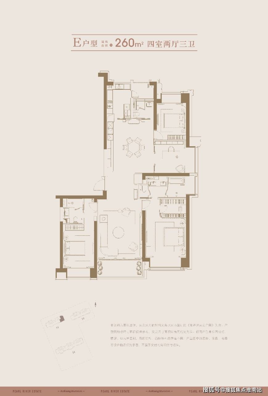 户型主力户型为140-165㎡三房两厅两卫,200㎡四房两厅两卫,250-260㎡四房两厅三卫。 纯平装大户型设计。二期共计205套