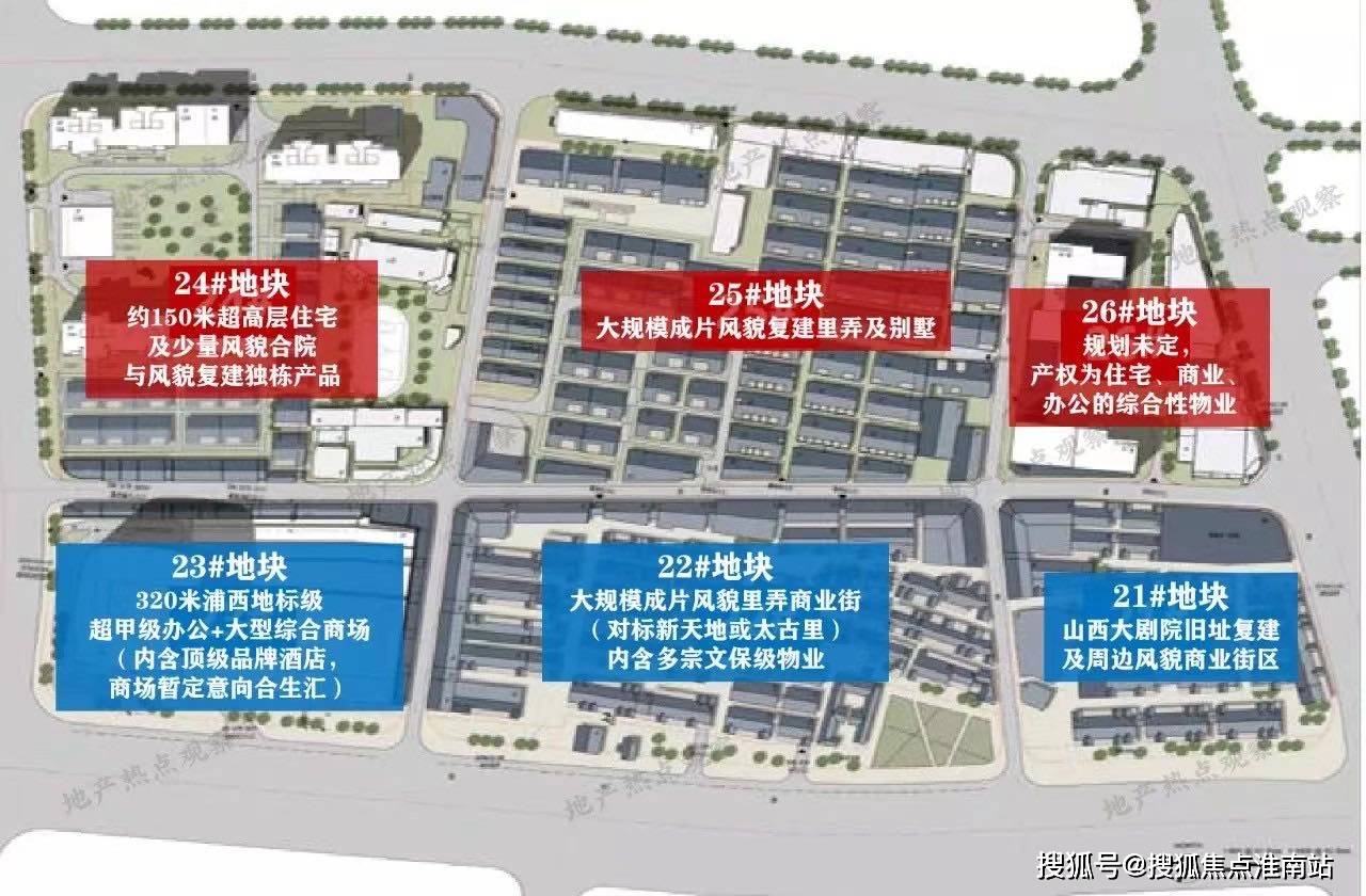 【21# 地块】——山西大剧院旧址复建及周边风貌商业街区 【22# 地块】——大范围成片风貌里弄商业街(对标新天地或太古里);内含多宗文保级物业 【23# 地块】——配置约320米浦西地标级超甲级办公,内含顶级品牌酒店;低区裙楼为大型综合shoppingmall(暂定意向协作品牌为合生汇) 【24# 地块】——健康苑一期住宅,以及少量风貌合院与风貌复建独栋产品 【25# 地块】——大范围成片风貌复建里弄及别墅 【26# 地块】——规划未定,产权为住宅、商业、办公的综合性物业 这一部分是合生汇的购物中心部分: