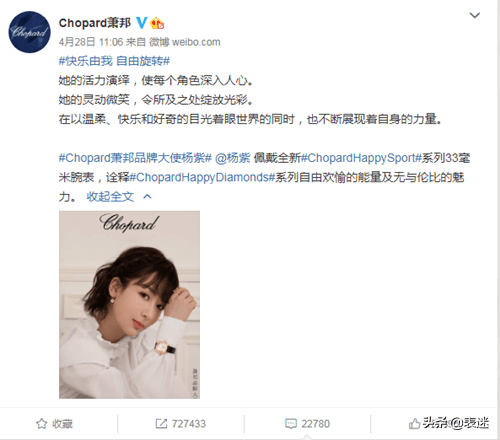 是的,这个官宣图片实践上也就是杨紫正式从萧邦品牌挚友升级为品牌大使了。官宣图公开后,就引发粉丝和网友的热切关注。粉丝自然是祝贺自家爱豆,而网友大部分则以为杨紫的资源好。