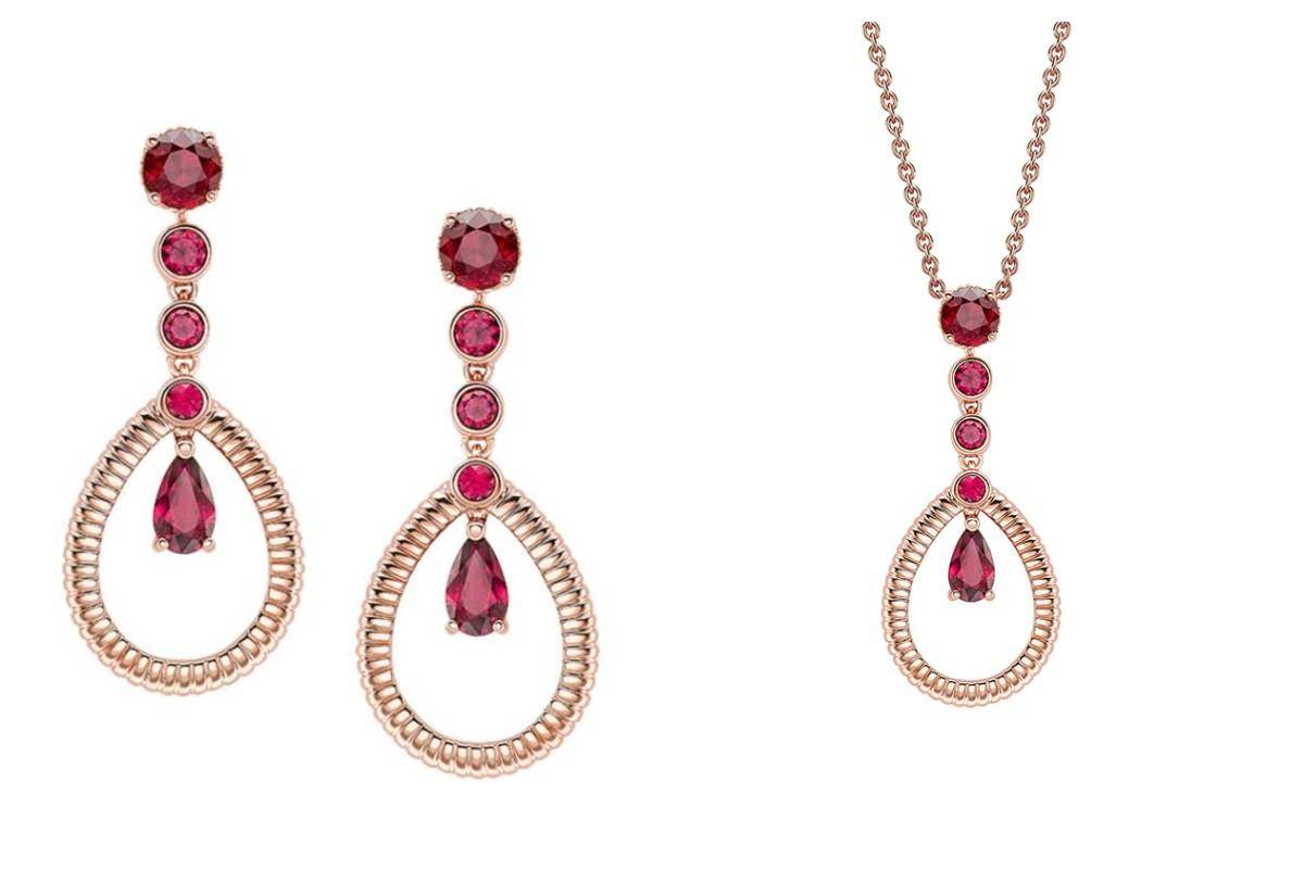 浓郁复古感的祖母绿与18K黄金色搭配显得复古精致,合适肤色较白的女性; 红宝石合适与洋气的玫瑰金搭配,热烈豪迈; 而蓝宝石与18K白金色的组合则显得俗气洁净。 3,多种镶嵌工艺和具未来感的凹槽刻纹唯美不抵触 这组作品中除采用了经典的爪镶外, 从大到小排列的宝石则采用包镶方式呈现,包镶相比爪镶,不是十分的显宝石火彩,但却能呈现出禁欲般的复古洁净感; 另外3爪镶主石部分,爪上有吸珠, 假如想要更奢华一些的效果,能够在爪上镶嵌钻石,也就是对镶嵌工艺请求比较高的爪上镶石,效果应该是能够的。