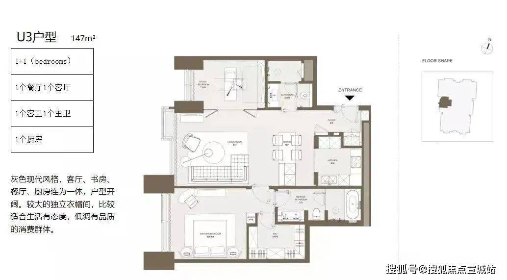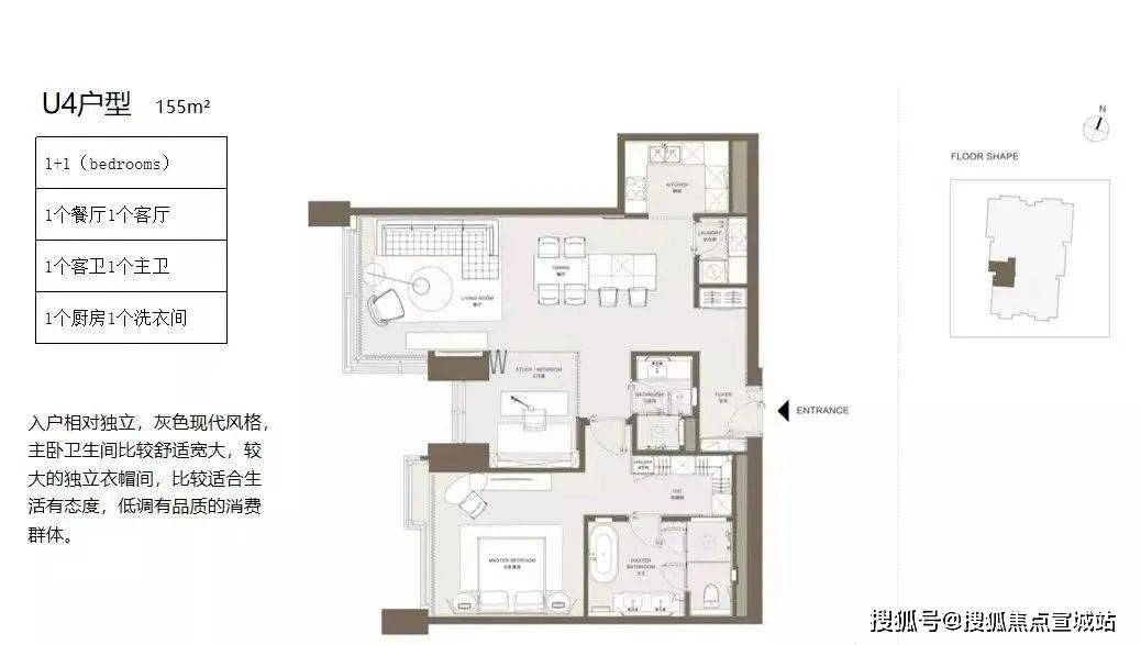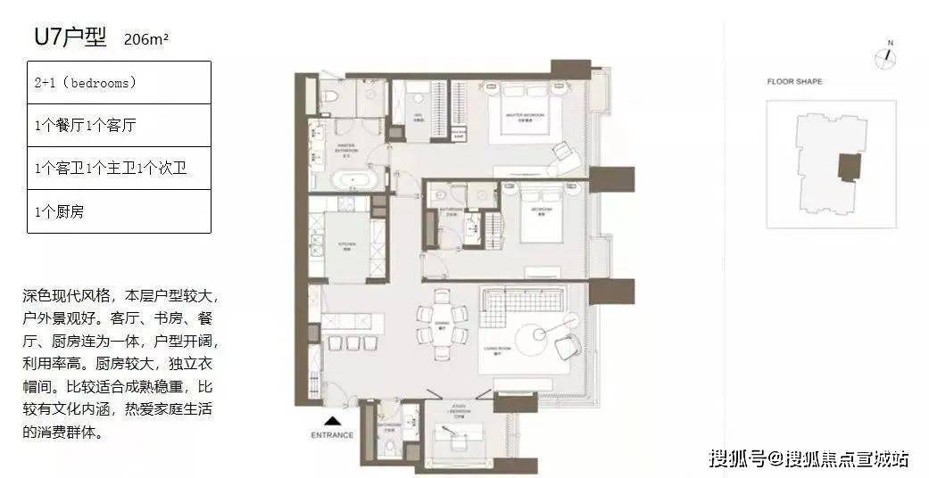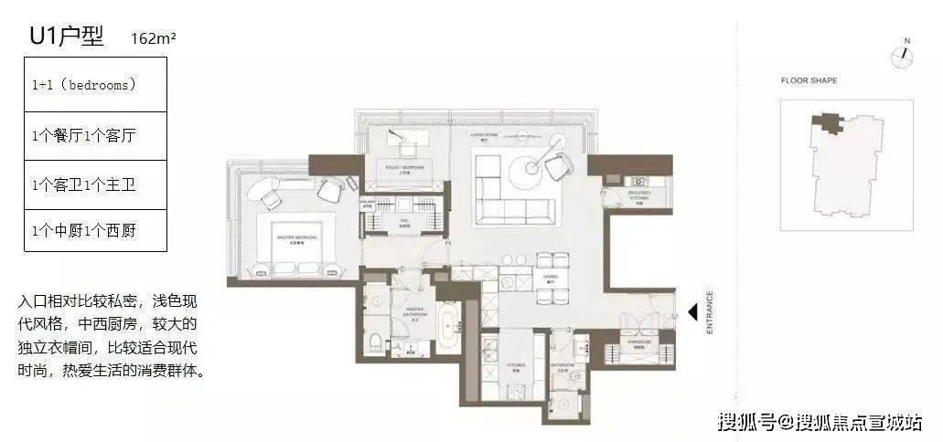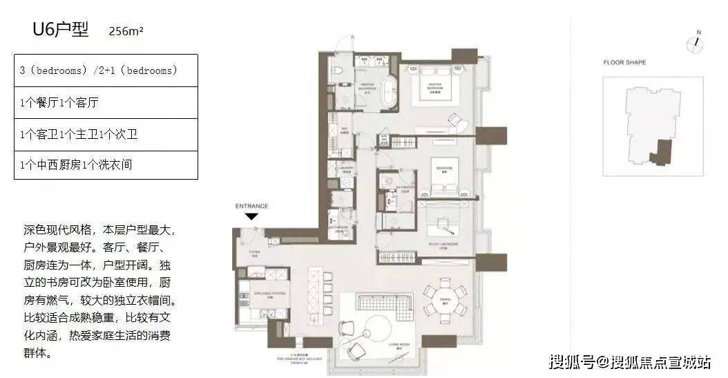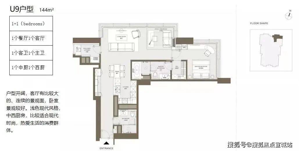 户型特征: 1、同类产品中,层高较高。模范层U1U9户型天花最低点为2.6米, U2U3U4U5U6U7U8户型天花最低点为2.7米。U6客厅最高点可达3.15米左右; 2、全部为同层排水,减少干扰和噪音; 3、一层九户,共四部客用电梯; 4、U1U5U6U9户型可通燃气; 5、书房均有活动隔断,随时能够改动为卧室; 6、U5U6U7U8U9可俯瞰外滩、陆家嘴景观,U1U2U3U4可坐望城市绿地公园; 样 板 参 考