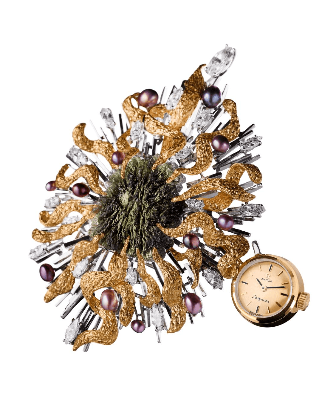 左:Gilbert Albert专为纽约世博会设计的典藏之作 右:Andrew Grima设计的欧米茄碟飞系列Jeux d’Or腕表 Andrew Grima和Gilbert Albert两位固然在国内知名度有限,但在国际藏家圈子中却颇具影响力。前者被誉为现代主义作风珠宝的奠基人;后者则发明了百达翡丽历史上“最为大胆”的Ricochet系列。 Gilbert Albert为百达翡丽和欧米茄设计的腕表多次取得行业最高荣誉,佳士得钟表专家更是以为他对贵金属和宝石的处置方式充溢了“极致的梦境和魔力”。