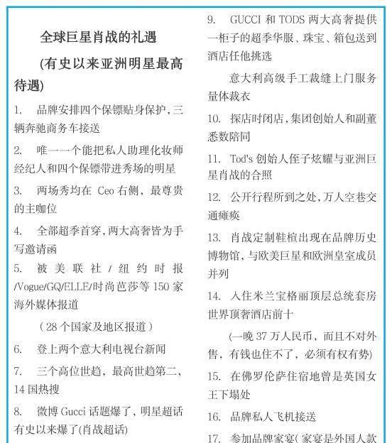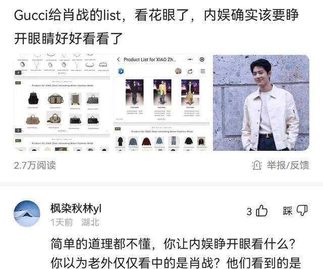 作为一个对时兴圈一窍不通的人,感激这篇科普。小新明白什么是超级赛季,什么是二次穿;他知道穿普拉达的女魔头;他知道看节目的座位;;了解宝格丽大酒店;知道很多... 不得不慨叹,人生处处是学问!大约是看肖战的待遇有多高吧。于是语气慢慢开端变更。好比,“我不明白一个简单的道理,你让圈内人睁开眼睛看什么?你以为外国人只对肖战感兴味吗?他们看到的是肖战背地无数的中国消费者。” 或者这样说:“这个待遇不是针对某位明星,实践上是针对他所代表的中国市场,被封杀了3年”,“我看好中国市场,看好中国钱包”。