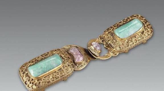 清·铜鎏金卷草纹嵌翡翠、碧玺带扣|图源:北京保利 忍冬纹 说起中式纹样,往常大家印象里最熟习的,总少不了卷草纹、缠枝纹。