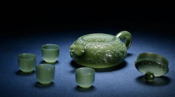 马洪伟青玉薄胎缠枝纹茶具 相比卷草纹只需茎和叶,缠枝纹样式更为多变。 既能够常青藤、扶芳藤、紫藤、金银花、爬山虎、凌霄、葡萄等藤蔓植物为题材,也有缠枝莲、缠枝牡丹、缠枝菊等缠枝花卉纹。画面婉转流利,在明清时期普遍应用于瓷器装饰中。