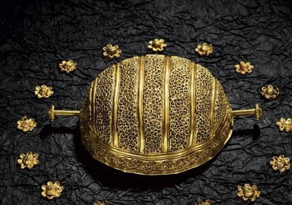 唐·银部分鎏金海兽卷草纹长颈瓶部分 五代、宋、西夏的卷草纹相对繁缛懦弱,到明朝时期,金银首饰制造进入一个新的巅峰时期,卷草纹东山再起,在金银器上大放光辉。
