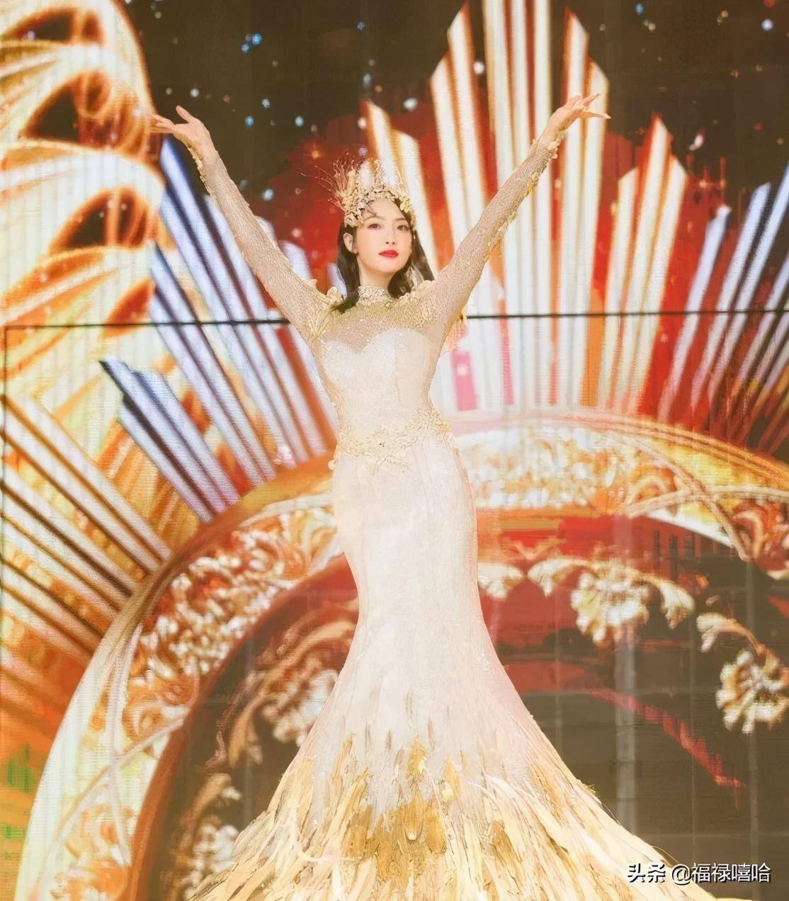 赵丽颖的礼服是公以为最美观的一套,端庄大气,很合金鹰女神的人设,也十分合适她。