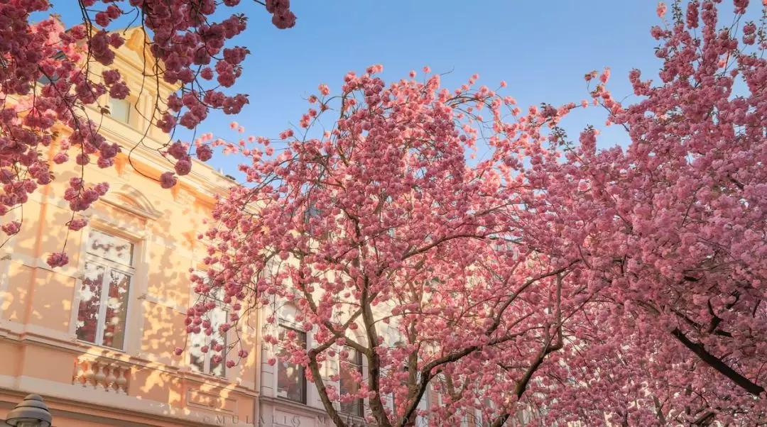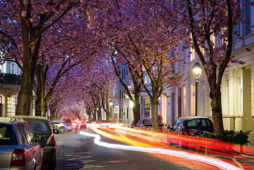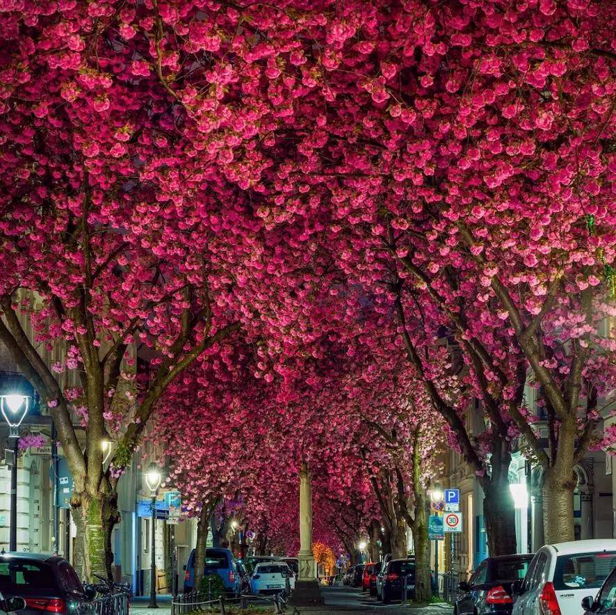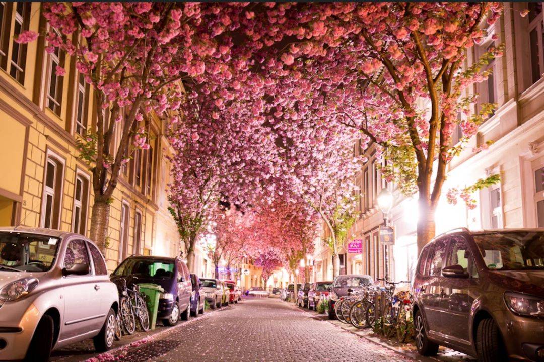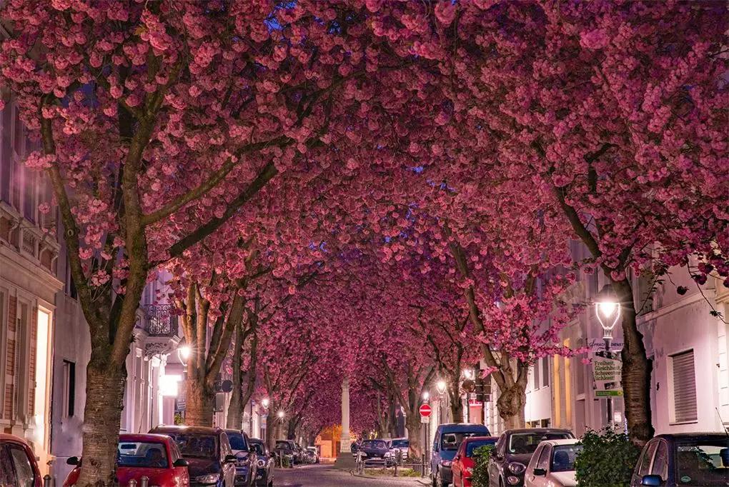 传说中的樱花隧道就坐落在波恩老城区。 一整条街道都种植着晚樱, 浪漫的粉红色的街道 成为整座城市最浪漫的中央。