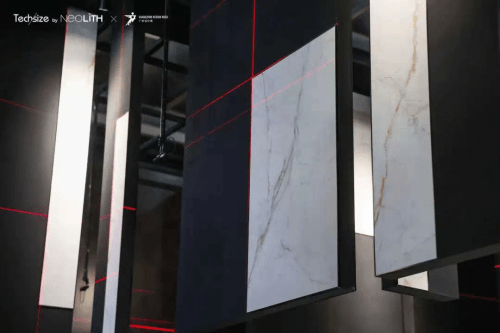德赛斯产品展示 03创新赋能人居美学 新产品、新工艺焕新空间 “美”不只在颜值,还在于功用应用和工艺创新。此次除了展厅的匠心独具值得重复品味之外,德赛斯还展示了多个抢手花色,包含十周年新品花色“烟波瀚海”和“宝格丽白”,以及德赛斯岩板一体洗手盆、德赛斯与坚美门窗联名推出的极致门、德赛斯与骊住合力研发的厨房岛台,这些都赚足了眼球,成为展会重点关注产品。
