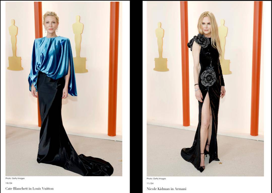 穿LV的Cate Blanchett和穿Armani的Nicole Kidman分别取得66%和60%的得票率,姜还是老的辣。