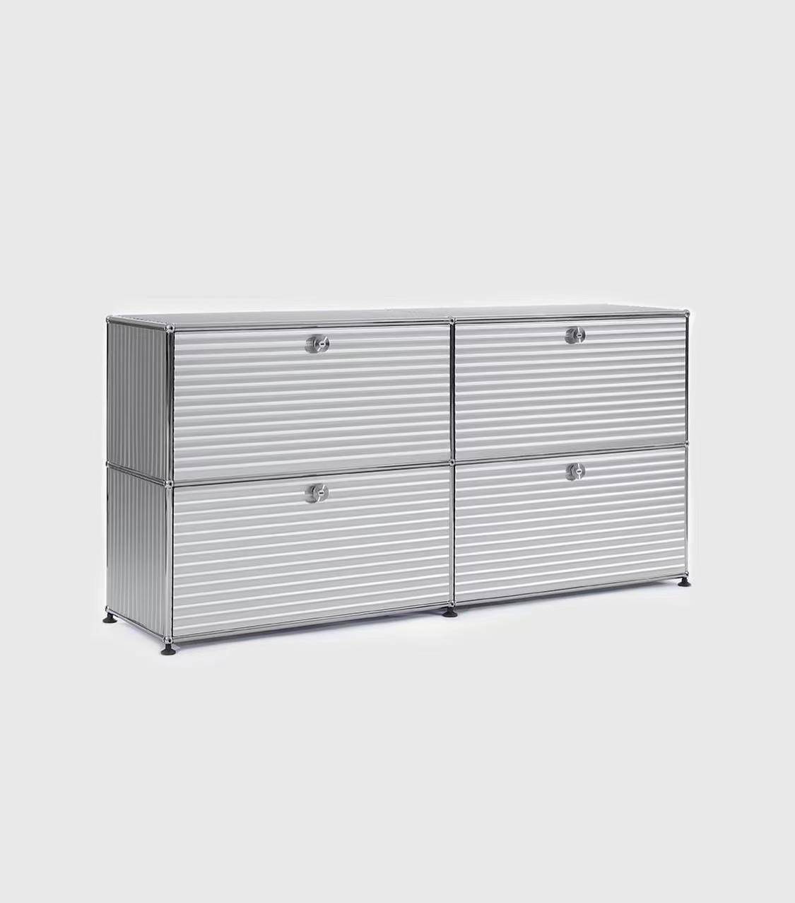 Serpenti Reverse包袋共两种样式,一款搭配的是蛇纹金属手柄,另一款则采用蛇纹金属链条与皮革拼接的长肩带,两款均采用精密的Matelassé绗缝皮革设计,搭配品牌经典蛇头包扣,和内部大收纳空间,是日常或工作时提升时兴感的理想单品。 Rimowa x USM Modular Furniture收纳柜 Rimowa作为备受注目的奢华旅游箱品牌,早已不再满足于在擅长的范畴发挥拳脚了。与艺术家协作,与时装品牌跨界设计联名行李箱都是该品牌常见的动作,而此前推出过的手机壳,包袋,眼睛等单品都具有激烈的品牌个人作风,与任何元素都能融合的恰如其分,Rimowa的确爱玩又有才。