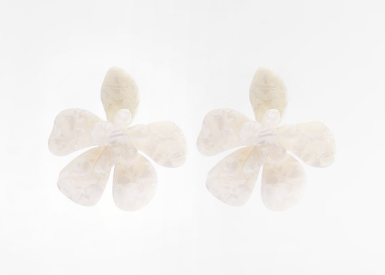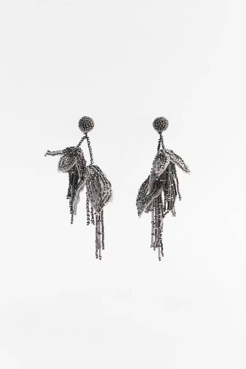花卉耳环一款选用太空灰串珠材质,将花朵的垂坠感和在微风中摇曳的姿势生动展示,合适喜欢较为夸大作风的时兴迷;另一款耳饰选用突变亚克力材质,奶油白色的绽放着的花朵被设计成层叠样式,突出花朵的平面视觉效果,这款耳环比较百搭,日常合适搭配西装外套,或参与音乐节,派对,出街都能轻松驾驭。
