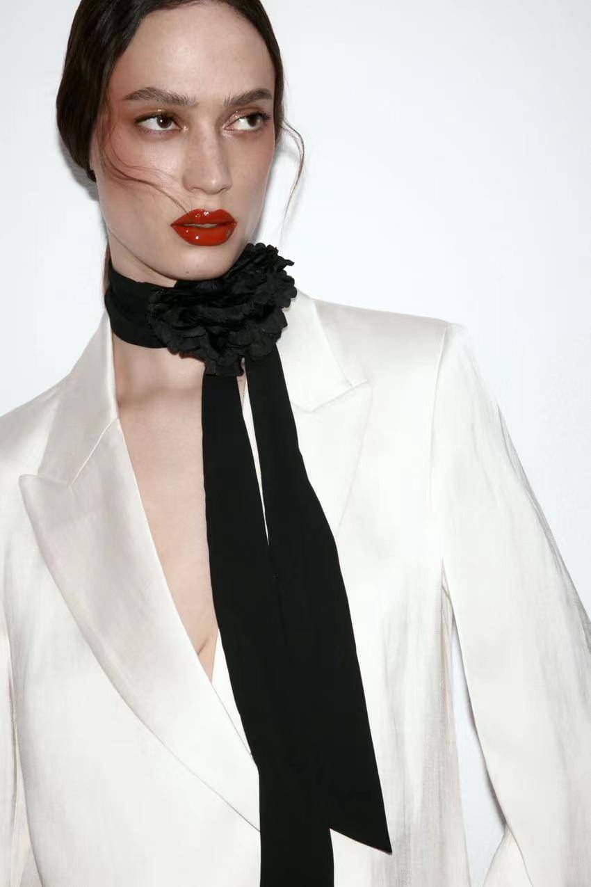 最后一款提供三种配色的花卉颈巾是一款能瞬间提升时兴感,秒出复古妩媚大片的配饰神奇,近景拍摄中花朵的每一片花瓣都十分精致,特别是白色款与真花简直没有差别。玫粉色艳丽,黑色别致,白色清新。Zara新款夏季花卉饰品系列绝对是品牌饰品中的宝藏系列。