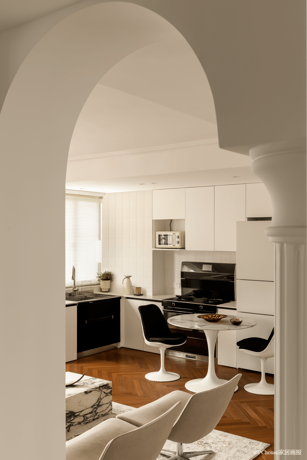 ▲餐桌、餐椅:knoll 无论哪个角度,调和的颜色是整屋文雅精致的秘诀,黑白经典配色营造出的法式氛围,典雅中不失时兴耐看。