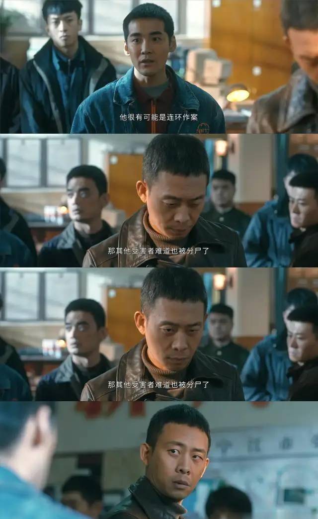 04 幼儿园教员杀夫案 接下来在要不要把割喉案和碎尸案并案这件事上,卫国平跟专家教授产生了分歧,最终没有并案。 这里其实卫国平的确急了,专家也不是没有道理,能兼并的条件太少了。 然后在渣滓山翻出的证物中找到一个“艾青”的线索。 顺着这个线索,去了幼儿园,去找阎春生。 固然给了很多疑似误导,好比他是干切割猪肉的,具备这个碎尸才干,但是最后还是发现这是另一个案子,阎春生自己被自己老婆杀了,尸体被卫国平发现。 你看,继第三集破获绑架案之后,第四集又破获了杀夫案。 编剧真的不肯闲着,也不肯让观众闲着,就是一个又一个的案子往观众身边送。 这种快节拍的刑侦剧,你能不爱吗?