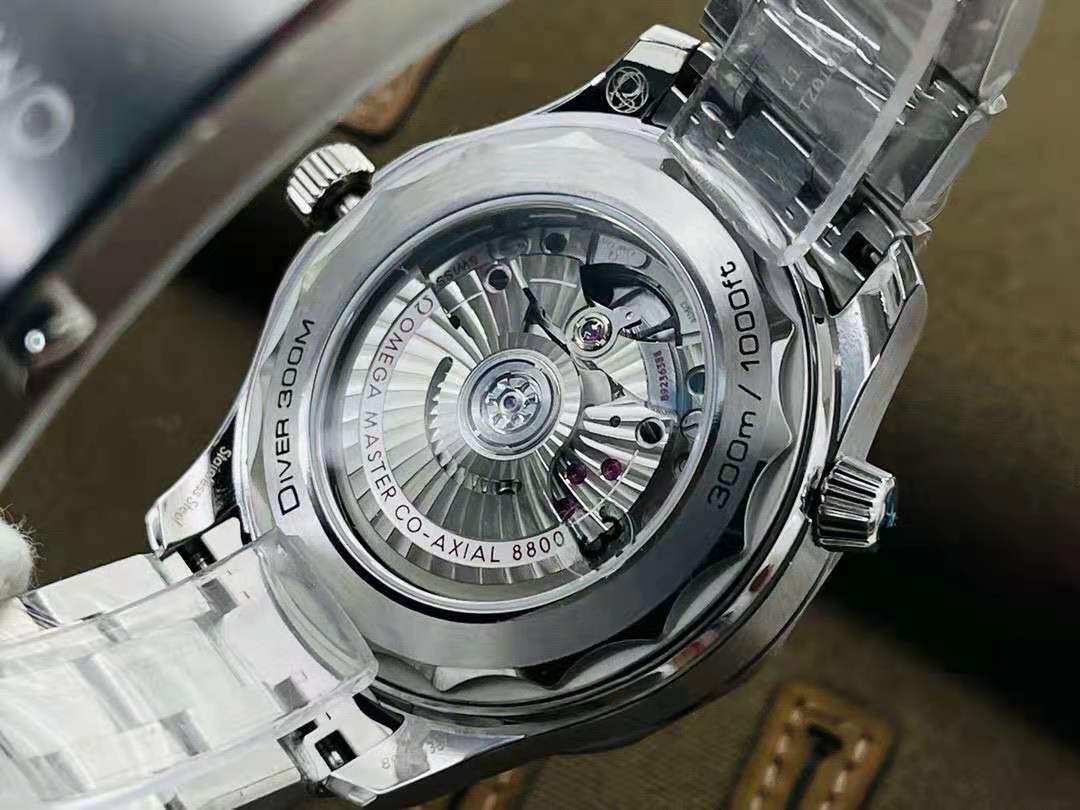 内部搭载的8800机芯,是欧米茄的最新型机芯,首先机芯经过打磨修饰,看上去视觉效果十分好。而且机芯的性能也不错,精准度与稳定性都很好,还能提供55小时的动力贮藏,日常佩戴完整足够。