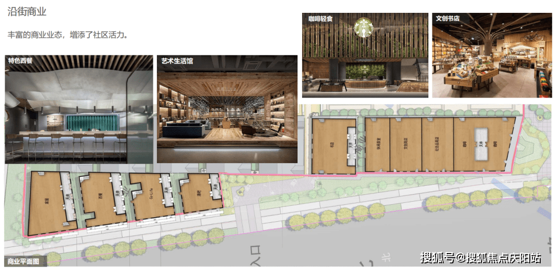 内部有文学公馆、餐饮,商业配套嵌入文创、书店、咖啡等场景,以及公开会所。