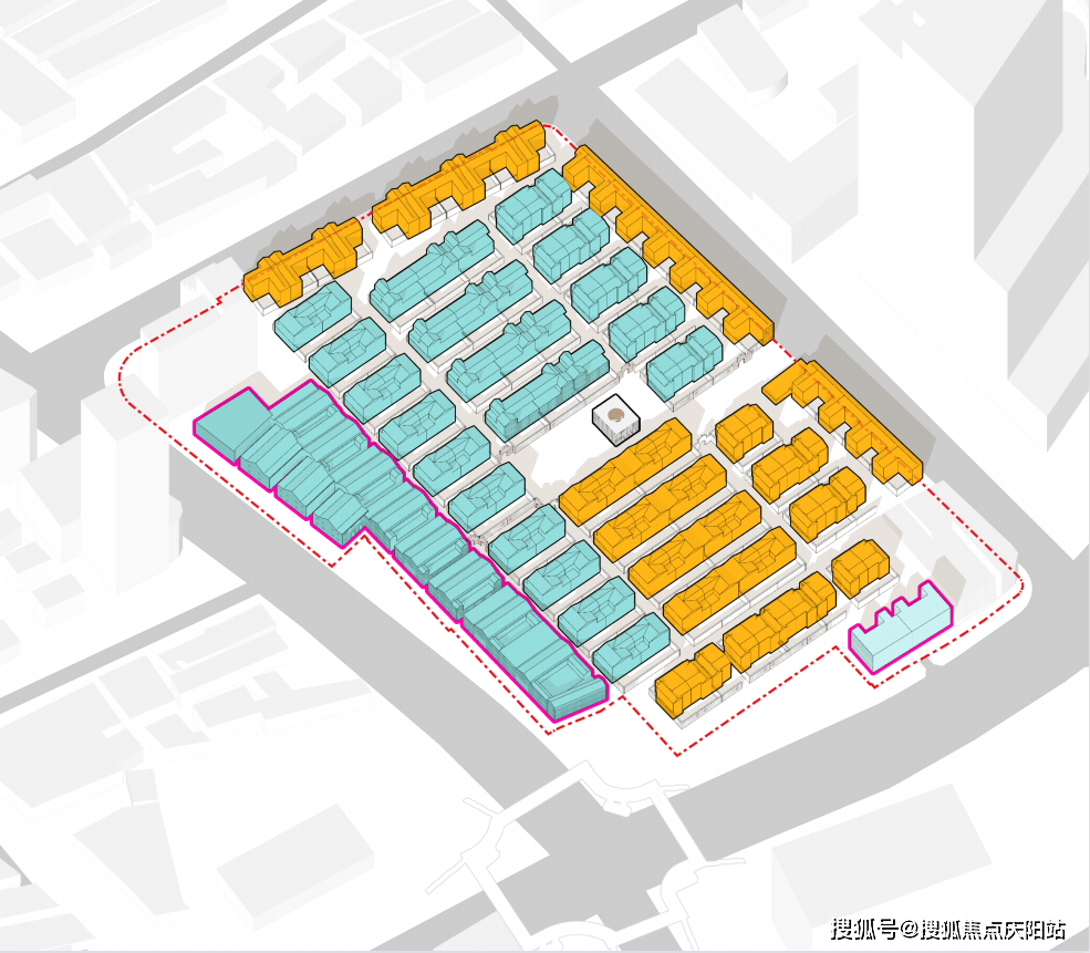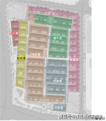 另外,从组团上看,分为历史维护组团、内部组团、沿街组团: