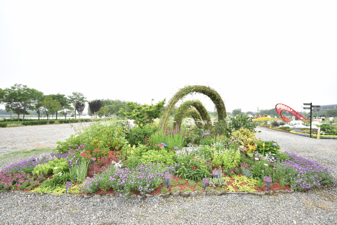 ▲郑州北龙湖花境“共筑中国梦 奋进新时期” 本项目研讨经过技术攻关,采用样地调查和工程实证研讨,摸清了典型区域自然森林群落结构稳定性机理、种群生态位特征及植物竞争关系,找到了园林植物小群落的视觉美学影响因子,提出了园林植物小群落生态美学设计途径,研制了建构筑物周边、滨水临海、墙边路缘、平面空间、微地形及其他破碎化场地等关键场景的小群落配置措施,总结了一套园林植物小群落人工构建的施工工艺规范。工程应用后景观效果和社会经济效益良好。