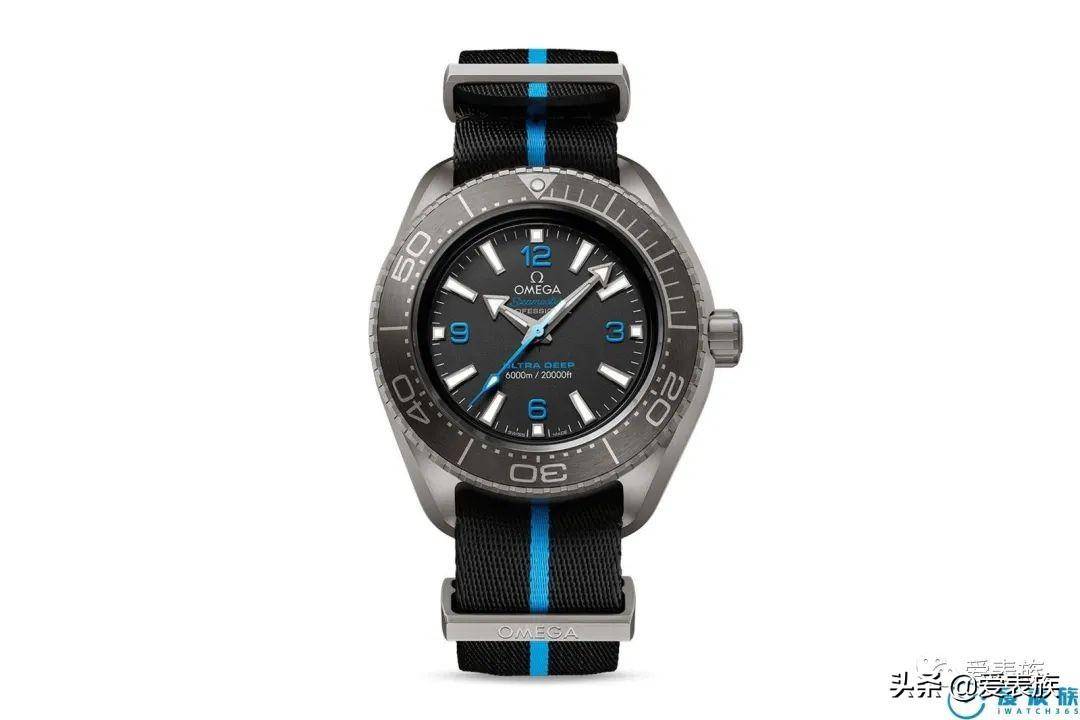 极高防水压力缘故,腕表配备了一块 5.2 毫米的半圆锥形蓝宝石群居网镜面,同样的表冠和底盖当然是旋入式的。这款手表没有 HEV,由于表壳的耐氦结构设计,因而不需求 HEV排氦阀门。 底盖也是钛合金,并经过两部分结构拧入表壳 - 底盖自身和用于密组件的环。它采用激光雕琢和激光着色,带有经典的海马标记图案,一切手表上的雕琢都将对齐。顶部的蓝宝石群居网也是新开发的,命名为EFG。不只外形共同,而且资料自身也经过精心选择,没有任何缺陷,以确保没有颗粒或微裂纹会招致压力问题。 Omega Seamaster Planet Ocean Ultra Deep Titanium 腕表配备一条由 100% 回收渔网制成的聚酰胺纱线制成的黑蓝色 NATO 表带上,经过 5 级钛金属环和带扣固定在伎俩上。这条表带是钛表款的专用表带,不会在精钢系列中提供——主要是由于 Manta 表耳,没有其他选择。