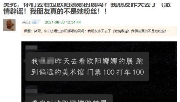 最近,为了能圈点粉丝的钱,欧阳娜娜在上海举行了个人艺术展。 网友爆料,由于美术馆偏僻,打车费100元,门票100元,满怀等候进去之后却发现,所谓的艺术展只是欧阳娜娜的 照片展 而已。