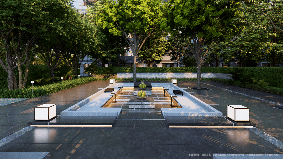 项目精心打造了六大景观场景,包含童玩场地、微风草坪、水榭林间等多种功用区。 草间茶座效果图
