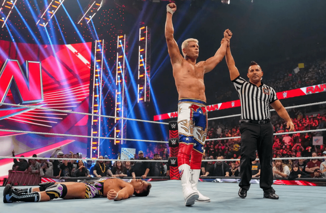 就在鲍比莱斯利准备分开擂台的时分布雷怀亚特在擂台上播放了鲍比莱斯利热舞的片段,视频中还有豪迪叔叔的镜头,最后鲍比莱斯利通知鲍比莱斯利,赶快跑。 WrestleMania 39 将标记着布雷怀亚特时隔两年再次重返擂台,重返摔角狂热大赛,两年前布雷怀亚特在摔角狂热大赛上输给了兰迪奥顿 Randy Orton。而他的对手鲍比莱斯利在摔角狂热大赛上取得连胜,过去两年击败了奥莫斯和德鲁·麦金太尔。 科迪罗兹 Cody Rhodes 回归WWE到往常的战绩是33-0