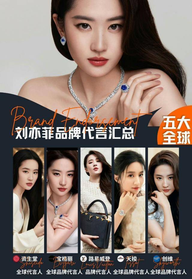 目前,茜茜具有5个全球品牌代言,分别是宝格丽、LV资生堂、天梭、创维。她具有宝格丽和LV两个朴素品牌的全球代言人,两次登上VOGUE杂志封面。在文娱圈,没有哪个明星能比得上刘亦菲。