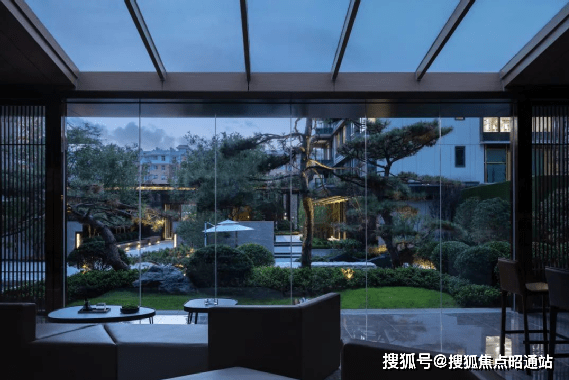锦粼天序实景图 占地11亩的琉璃光院,种植了40多种花草与灌木,30多棵大型乔木,搭配出琉璃光院五彩斑斓的景观意境。