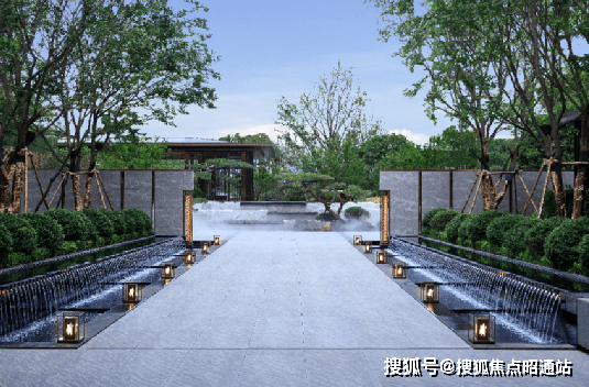 锦粼天序外立面实景 在前期设计阶段,锦粼天序设计团队为玻璃幕墙的反射比找到了一个最合适的值,最终的效果就是既能最好的反射出昆明的蓝天白云、五彩云霞,又能最大水平的维护业主隐私。 实景园区彰显超强兑现力 固然项目位于寸土寸金的双塔片区,龙湖仍拿出大面积土地、花了大手笔来打造园林景观。 入户后的清澜观瀑是龙湖用黑松、山涧、叠瀑打造的3D平面山水画,业主一进家就置身于流水潺潺之中,治愈一天的疲惫。