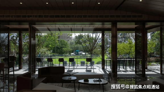 锦粼天序中庭景观实景图 其中不乏桂花、乌桕和蓝花楹等名贵树种。 距离琉璃光院实景园区开放曾经过去了一年多时间,往常的园区枝繁叶茂,植被层次愈加丰厚,未来业主站在叠翠阁便可感受繁花似锦,满眼诗意。 此外,叠翠阁室内还设置了吧台、茶室、书吧,同时温度恒定在26度左右,保障业主一年四季都能够享用温馨密切的会客、亲子时光。室外为丛生滇朴林下空间,高大挺拔、枝叶繁茂,林下场所能够聚会、阅读、瑜伽。