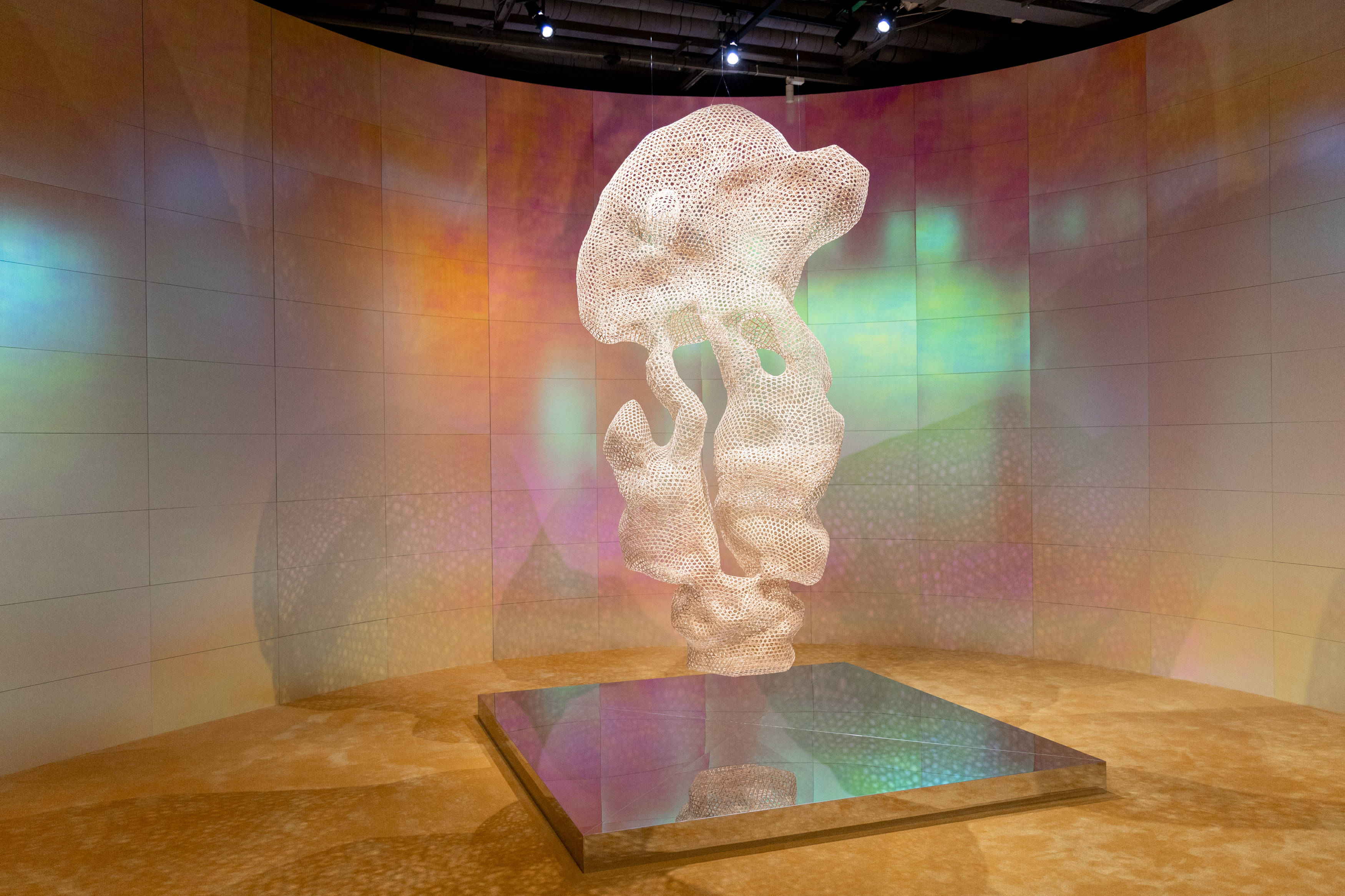 由一片金光绵亘的暖调 开启展览第一篇章「溯图腾传说」 你将经过雕像、壁画等可贵文物记载 洞晓蛇蜕皮、愈合及重生的过程 感知生命源源不时的力气