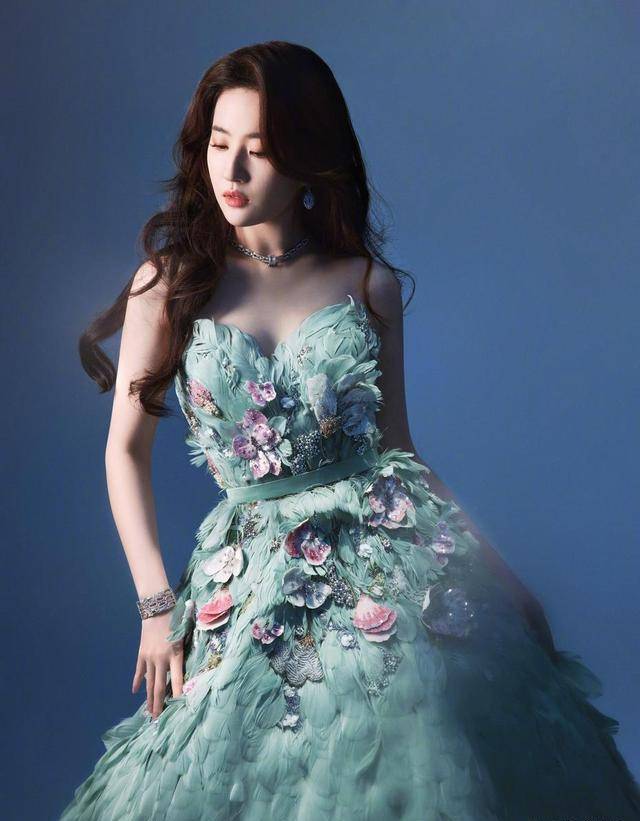 她采用孔雀蓝的颜色,裙子上散布着层层羽毛,胸前绽放着花朵和翅膀。嘴角轻轻勾起,别说你能对立,只怕和尚看了会出家……