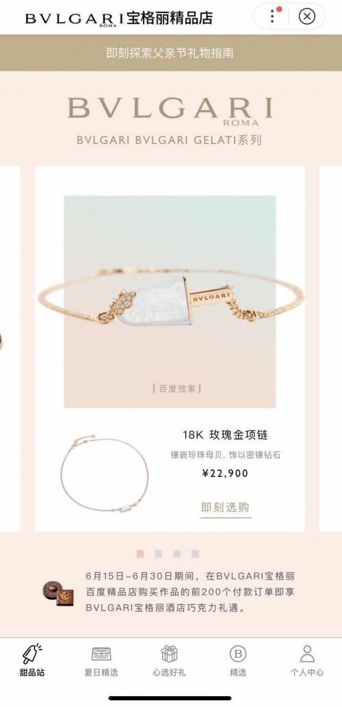 甘美又凉快的冰激凌筑起了你的整个夏日,更让人无法割舍的,是能够有一款随时陪伴你、让你的夏日有它的装点更耀眼耀眼的珠宝首饰。近日,百度智能小程序就与著名朴素品品牌宝格丽达成协作,独家上线并售卖宝格丽夏日冰激凌系列珠宝,并经过“夏日甜品站”H5游戏吸收了大量年轻人的关注。此次协作经过主打贴近年轻化、改动品牌惯有印象、有效提升好感度等发力点,为朴素品电商如何更多的运营自己的营销场景及关于消费群体的传播多元化提供了新的思绪。