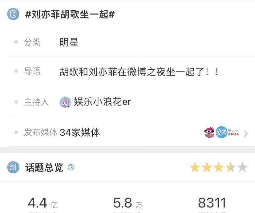 唐嫣没来,《胡歌刘亦菲同坐》个人阅读量超4.4亿;