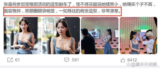 认真看张嘉倪的腰部赘肉颇为抢镜,但似乎也无损她的状态。 可惜的是在路人的随拍中,张嘉倪的状态却大打折扣,还有人呵责其 “黑瘦小 ”,完整是“照骗 ”。