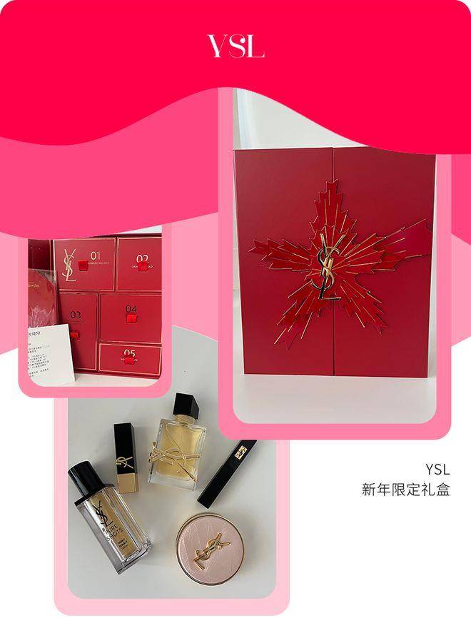 抛却往昔,以赤忱赴约新的一年。无畏表白,尽释愿望。以手可摘星的张扬姿势注目全场,此刻,肆享星年。 YSL家的礼盒翻开发现新世界,没错,这个新年里编辑们还愁每天涂一样色号的口红嘛? 倒计时礼盒,像是对着流星许下的美好意愿,每一扇小门后都是美梦成真的惊喜。礼盒内含多款人气爆品正装及随身可带的迷你装,包含YSL皮气垫、夜皇后精髓、小金条、自由之水等品牌的全系列产品。真的很难不让人心动!
