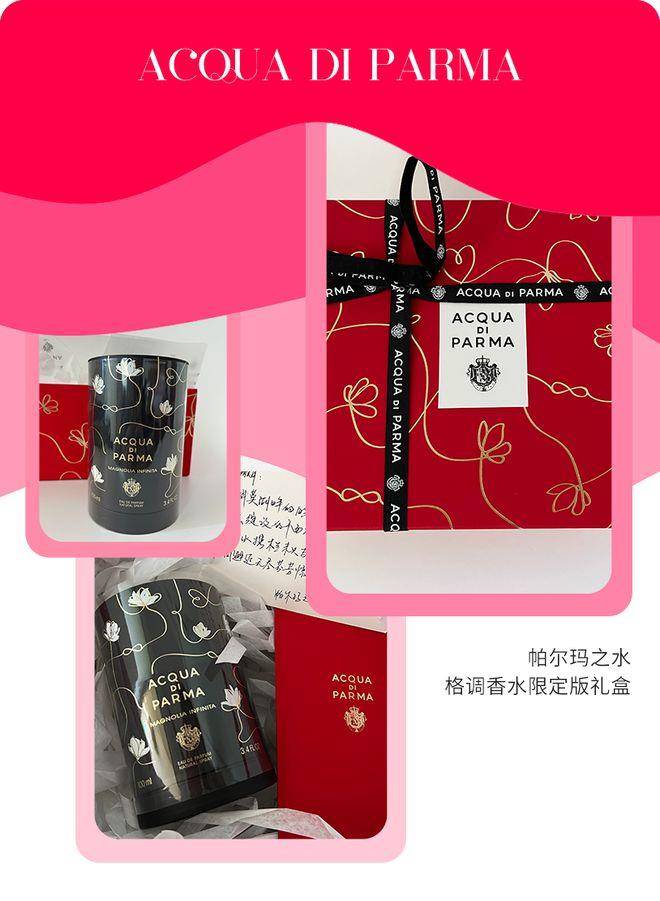 任感官陶醉于,「木兰未央」无止境的香调更迭。明亮柑橘香调好像日光,充盈木兰初绽的澄澈香氲。芬芳花香纷至沓来,协同木兰渐次绽放。这款诗情画意的「木兰未央」是今年帕尔玛之水送给编辑们的新年礼物,礼盒和瓶身的木兰花瓣之形与璨金色线条配以金色爱心与∞元素环绕透明瓶身,以无限爱意拥入盛放木兰,意味木兰与日光逾越时空的隽永爱恋,浪漫的原来不止玫瑰还有木兰。