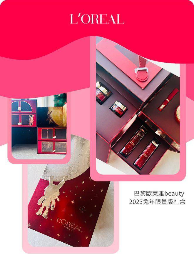 高能预警!巴黎欧莱雅 x ROBBi 掀起潮玩风暴,梦境联动啦!新年要开运,礼盒必须来点金色,通体红色的包装印刻烫金,还没翻开就感遭到“触手可及的奢华”。礼盒内,「欧礼兔」派发新年美礼,焕变新年限定装,加持红色新年元素和生肖兔形象,新的一年,要以星月奇幻之力,一同美上天~