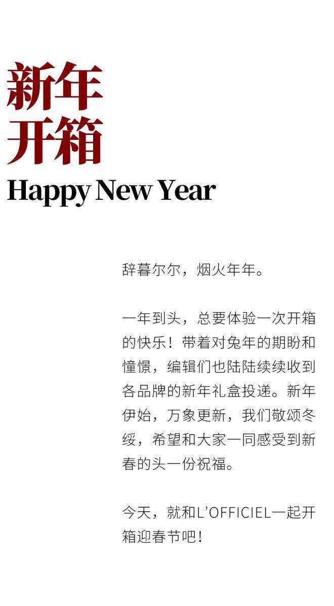 癸卯贺岁,金兔献瑞,且初的扭耶兔个上上签礼盒带来满满的科技感,未来感,特别兴味的扭蛋机设计作风真是在众多礼盒之中标新立异,10颗扭蛋有着十全十美的寓意,同时也承载着对2023年如意圆满的美好祝福,每一份扭蛋礼物都充溢着品牌爸爸的当心机,暖和又特别,心意满满! 看完一切的礼盒,最后送上诚意祝福。在大年初一之际,L'OFFICIEL祝大家:凛冬散尽,银河长明,新的一年,万事顺遂!快来评论区留言,分享你新年收到的礼物或者今年的新年趣事是什么! 我们将在1月30日抽取3名侥幸儿送上“新年小礼物”哦~
