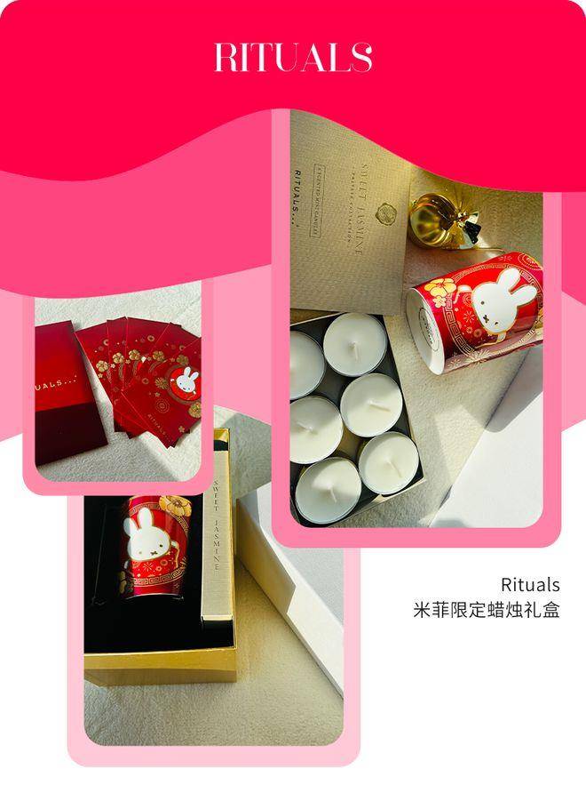暂时告别一年的忙碌,迎接难得的假期时光,那不如在治愈香气中重获身心均衡吧。收到Rituals的新年礼盒,就曾经感遭到包装的质感了,米菲的治愈形象跃然Rituals标记系列蜡烛礼盒中,米菲金色旋转烛台让暖和光影交错,骑自行车的米菲随着烛光旋转,童真兴味瞬即跃上心头,点燃烛光,暖和与聚会唤起记忆中的甜美香气。 这个新年,或许,代表着爱与治愈。