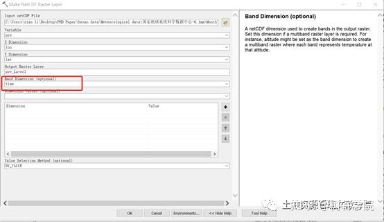 流程:多维工具(Multidimension Tools)-创建 NetCDF 栅格图层(Make NetCDF Raster Layer) ![]()
