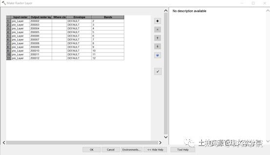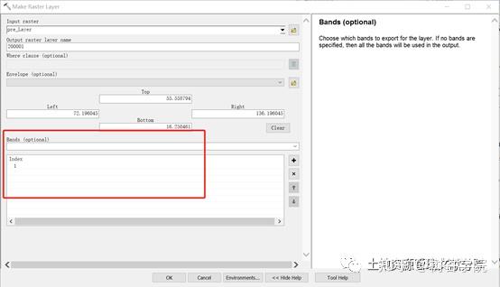 流程:数据管理(Data Management Tools)-图层和数据表(Layers and Table Views)-生成栅格图层(Make Raster Layer) 以1月份为例,输出栅格命名后,在Band处选择对应的输出月份,确定后即可生成对应的数据。 ![]()