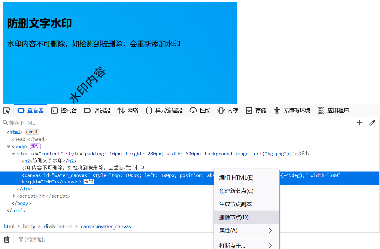 JavaScript奇技淫巧:防删水印JShaman原创资料,作者:w3sft,如转载请保留此信息。 为了保护版权、防截图、防拍照等,有些我们会给网页中的视频、图片或文字加水印。 实现的方式,可能有多种,比如:对图片、视频而言,可以在服务端完成水印,但对于文字信息类,一般只能在前端页面中进行水印添加。 本文分享一种图层式防删水印技术。其效果是:在页面渲染完成后,由JavaScript进行图层水印添加,并会实时检测水印状态,如果水印被删除、隐藏、或设置为透明,都会重置水印。 源码<html><body> <div id="content" style="padding:10px;"> <h2>防删文字水印</h2> 水印内容不可删除,如检测到被删除,会重新添加水印 </div> <script> function add_water_canvas(){ //水印canvas var water_canvas = document.createElement("canvas"); water_canvas.id = "water_canvas"; water_canvas.height = 100; water_canvas.width = 300; water_canvas.style.top = 100 + "px"; water_canvas.style.left = 100 + "px"; water_canvas.style.position = "absolute"; water_canvas.style.transform = "rotate(-45deg)"; //水印内容 var water_text = water_canvas.getContext("2d"); water_text.font = "26px 黑体"; water_text.fillText("水印内容", 30, 50); //canvas容器:水印目标 var canvas_container = document.getElementById("content"); canvas_container.style.height = 280 + "px"; canvas_container.style.width = 500 + "px"; canvas_container.style.backgroundImage = "url(bg.png)"; //添加水印canvas给目标div canvas_container.appendChild(water_canvas); } add_water_canvas(); var observer = new MutationObserver(function(mutations){ mutations.forEach(function(mutation){ if(mutation.removedNodes.length > 0 && mutation.removedNodes[0].id == "water_canvas") { console.log("检测到水印被删除,已重新添加水印"); //重新添加水印 add_water_canvas(); } if (mutation.type == "attributes" && mutation.target.id == "water_canvas") { console.log("检测到水印属性被修改,已重置属性"); water_canvas.style.display = "block"; water_canvas.style.opacity = 1; } }); }); observer.observe(document.body, { childList: true, attributes: true, subtree: true, attributesOldValue: true, characterData: true, characterDataOldValue: true, }); </script> </body> </html> 技术原理添加水印的方式平平无奇,只是新建了一个canvas图层,在图层中叠加水印内容。 取巧的是用MutationObserver对水印进行监控和重置。MutationObserver是一个很有创意的接口,它可以监听页面元素变化,任何元素的修改,如节点的增减、属性值更新、文本内容的改动都会触发MutationObserve事件,在本例中,会监测两种事件:节点删除、节点属性发生变化。 如,删除水印节点: ![]() 删除时触发事件,时此会还原节点、重置水印: ![]() 如,结点属性被修改(修改display为none使元素不可见,或修改opacity为0使元素完全透明),都会触监听事件,并重置节点属性: ![]() 其实应用于产品或项目时,可将JS代码用JShaman进行混淆加密,以防止代码被分析识破从而被针对性的反制。 注:本文演示中是给div添加水印,实际应用此技术时,水印可添加给任意种类的元素内容。 更多文章: w3sft:JavaScript奇技淫巧:网页内容防复制 w3sft:Eval加密的终极用法 w3sft:html网页源码加密 w3sft:JavaScript奇技淫巧:Eval的未公开用法 w3sft:JavaScript奇技淫巧:加密JS代码反调试 w3sft:72篇Node.JS教程:Node.JS编程从入门到精通 w3sft:JavaScript奇技淫巧:操控URL w3sft:JavaScript奇技淫巧:代码复制陷阱 w3sft:JavaScript奇技淫巧:隐形字符 w3sft:JavaScript奇淫技巧:反调试 w3sft:VS code扩展开发详解 w3sft:AutoJS代码能加密吗?YES,AutoJS加密技巧展示 w3sft:JavaScript-Obfuscator4.0.0字符串阵列化Bug及修复方法 w3sft:特别适于小程序、小游戏过审的JS加密方法 w3sft:JavaScript黑魔法:不可阻止的“自动下载” |