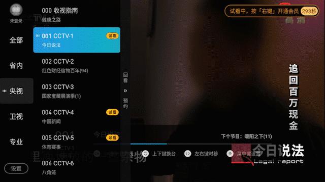 频道切换非常丝滑,覆盖央视18个频道、各省卫视32个频道,共计50个频道。