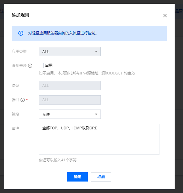 1.2添加防火墙规则 添加防火墙规则以开放端口,我这里为了方便一次性开放了所有端口,各位可以根据实际情况进行选择。