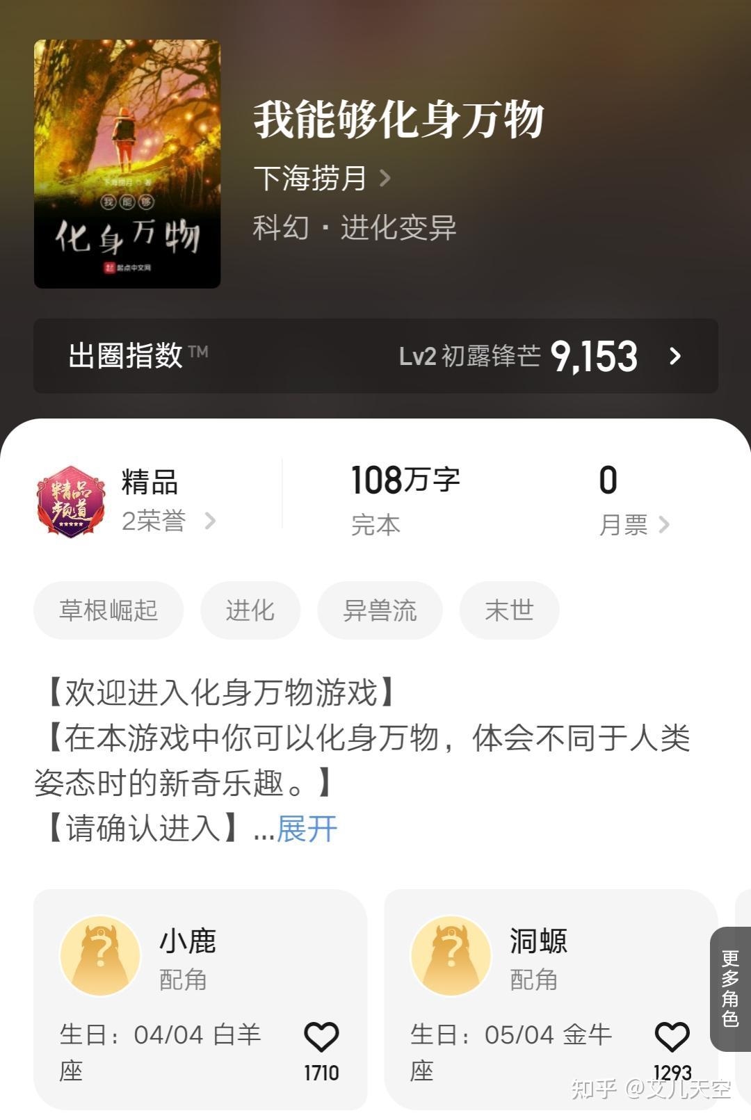 化身万物那本是“下海捞月”的作品,我还是有点印象的,这是一个四级账号的精品作者。 之所以开马甲,显然还是这个账号上太监烂尾的次数有点多,换个笔名重新做人了。